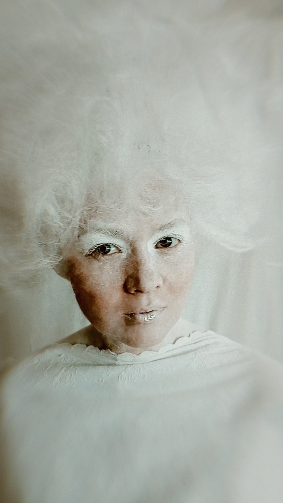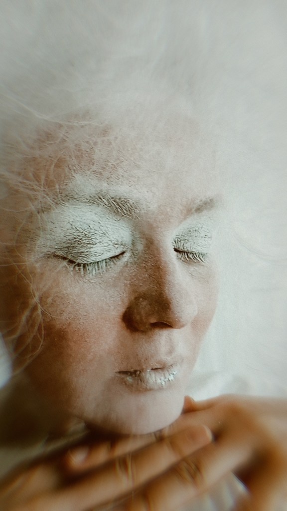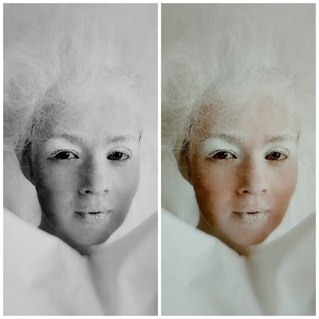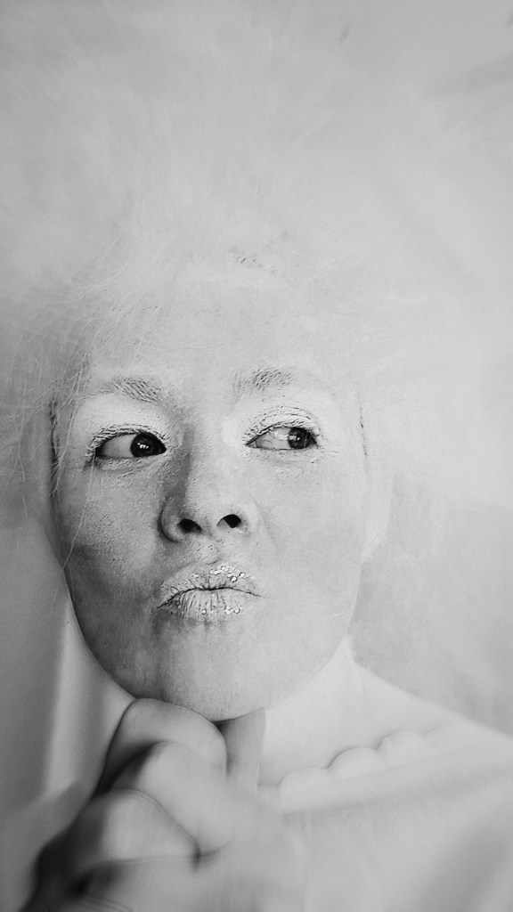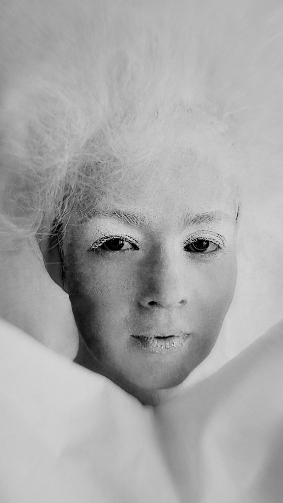 Після зустричей, обговорення і підготовки я вирішив Олю Олексій уявити — чистим (білим) папером, з котрого все починається. Тому і всю перформ серію я робил білого кольору, залишая лишь деякі акценти — такі як губи, одежа, тощо.