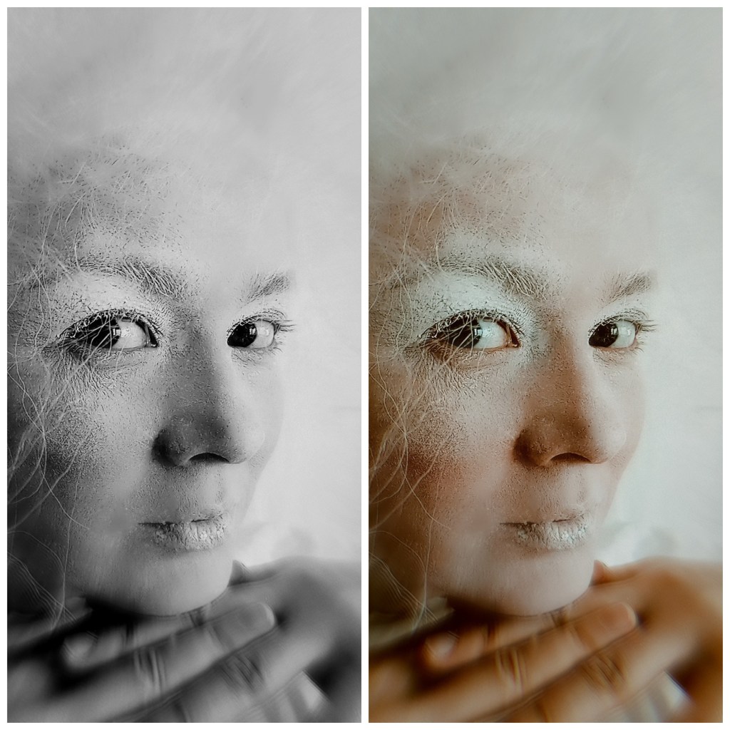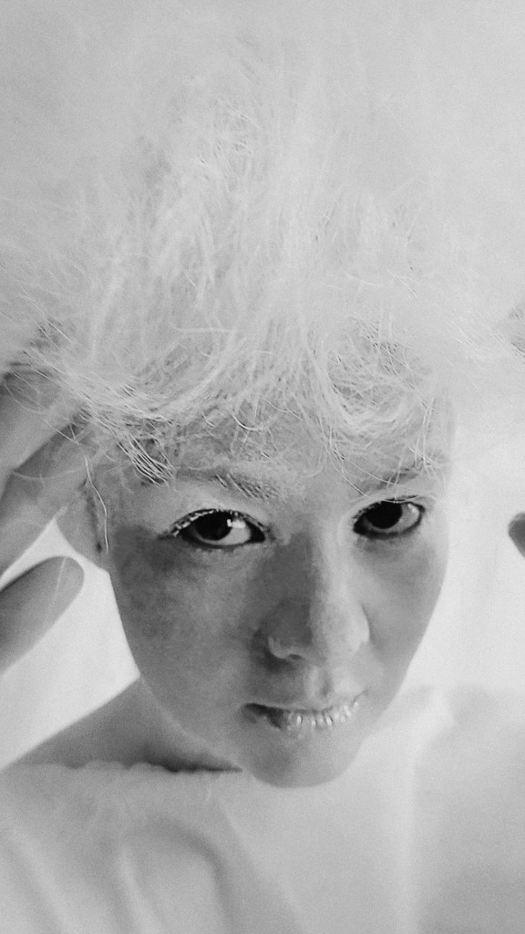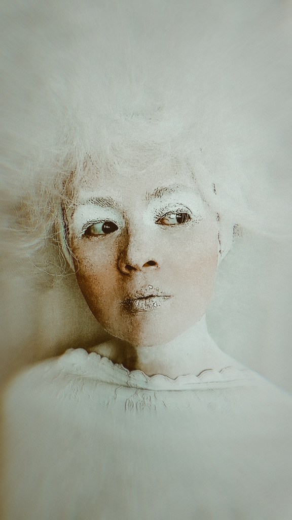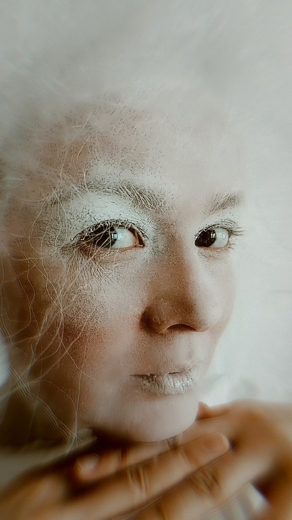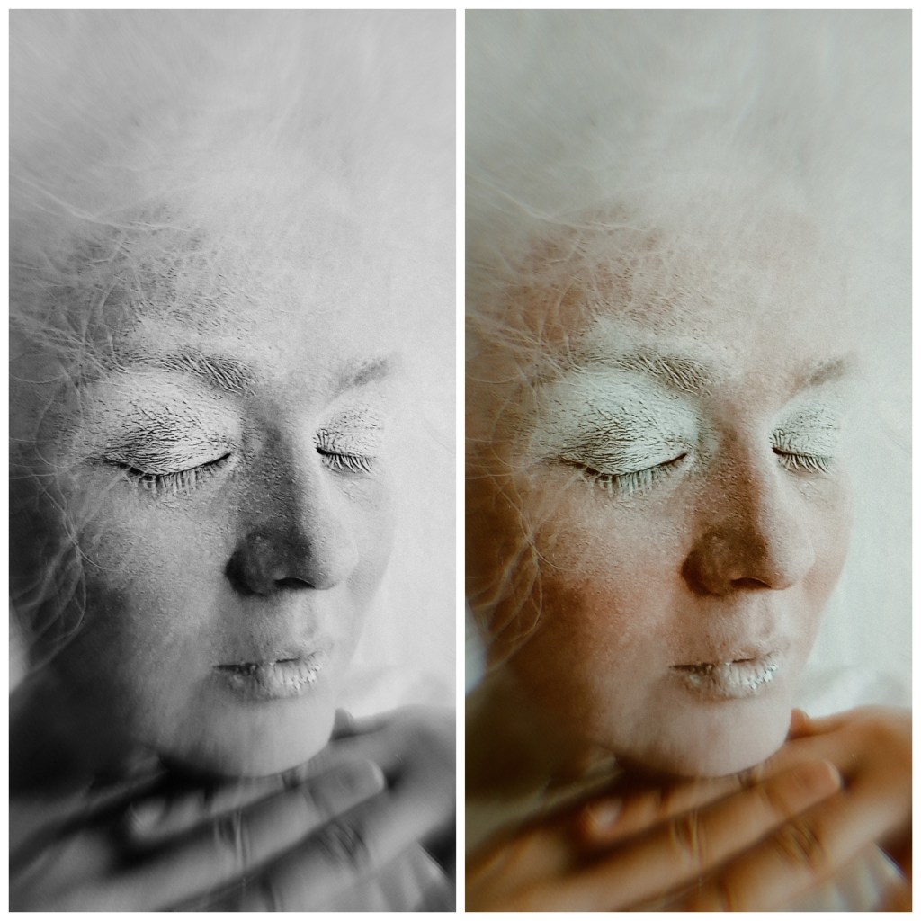 Після зустричей, обговорення і підготовки я вирішив Олю Олексій уявити — чистим (білим) папером, з котрого все починається. Тому і всю перформ серію я робил білого кольору, залишая лишь деякі акценти — такі як губи, одежа, тощо.